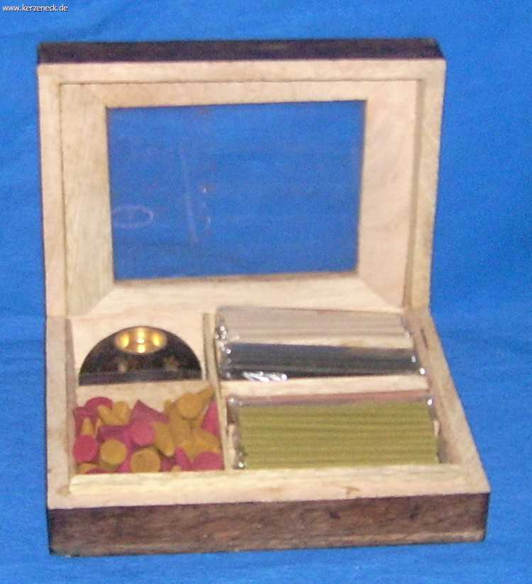 Geschenkbox Antik Holzbox im Antiklook mit 4 x 30 Räucherstäbchen 2 x 20 Räucher- kegel, incl. Holzhalter! Maße der Box: ========== Breite: ca. 15,5cm Tiefe: ca. 13,1cm Höhe: ca. 4,5cm Nur solange der Vorrat reicht! Aktion war erfolgreich Das hat leider nicht geklappt. Warenkorb anzeigen Zur Kasse gehen Weiter einkaufen Produkt-ID: 551 10,59 EUR Unser alter Preis 14,05 EUR, Sie sparen 3,46 EUR! incl. 19% USt. zzgl. Versand und weiteres Anzahl: St In den Warenkorb Auf den Merkzettel Räucherkegel im Glas Zimt Holzräuchermännchen